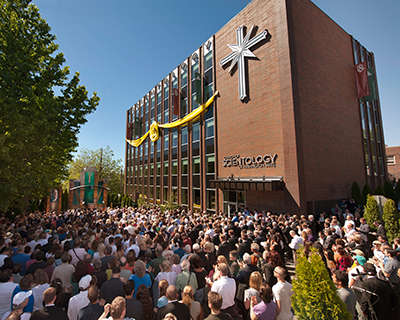 Les services religieux ont lieu dans des salles de cours et de conseil spirituel esthétiques et dépourvues de distractions superflues. Il y a aussi des bibliothèques, des librairies, des salles de films et de séminaire et de grandes chapelles pour les services dominicaux, les mariages, les baptêmes et autres rassemblements de la congrégation.