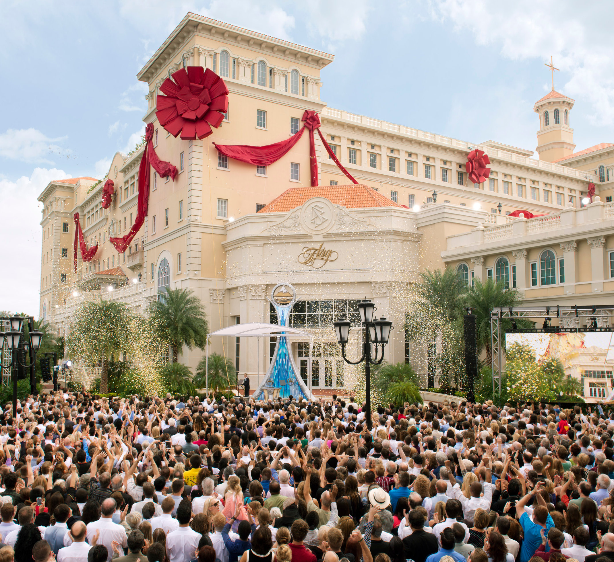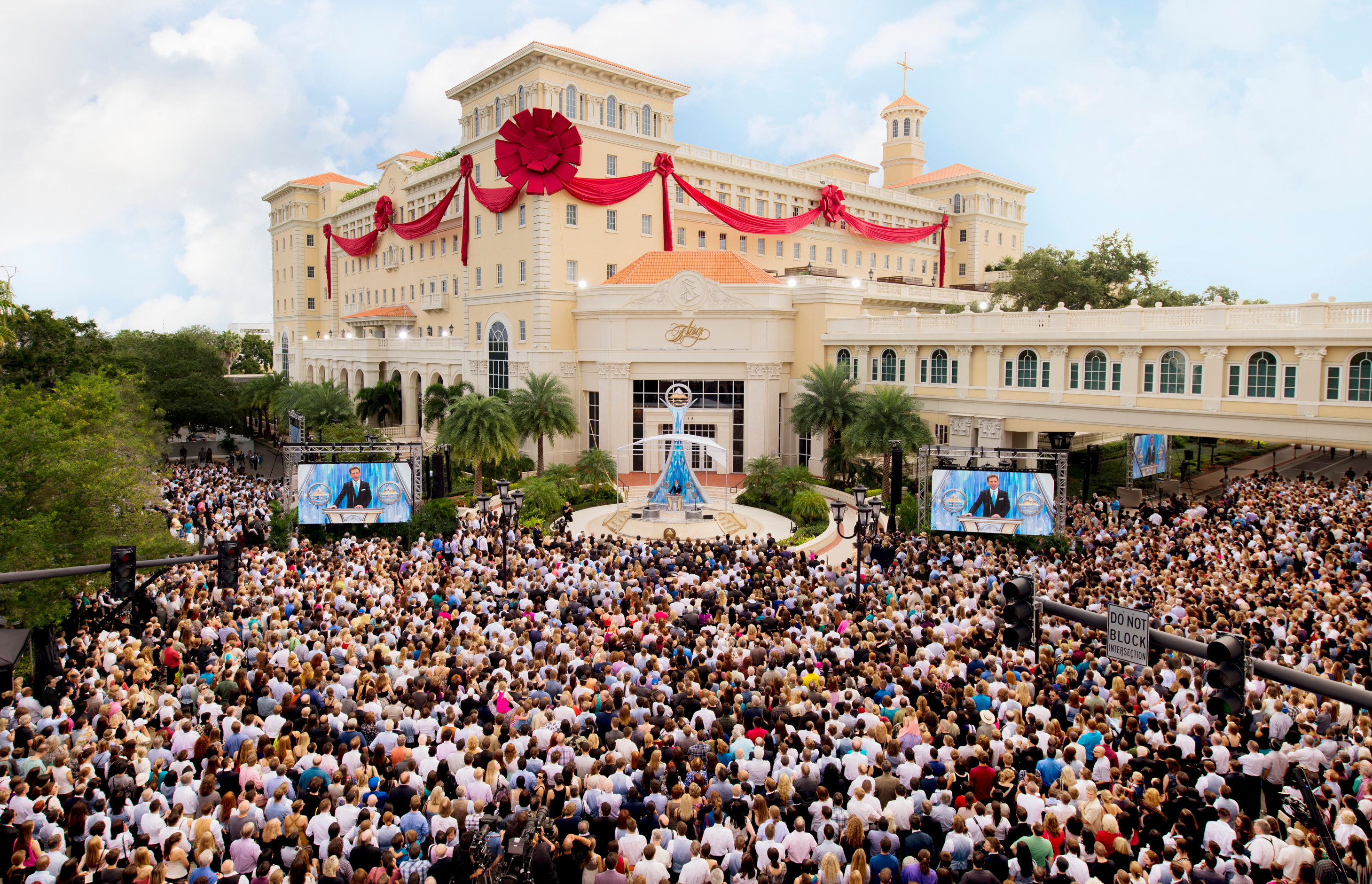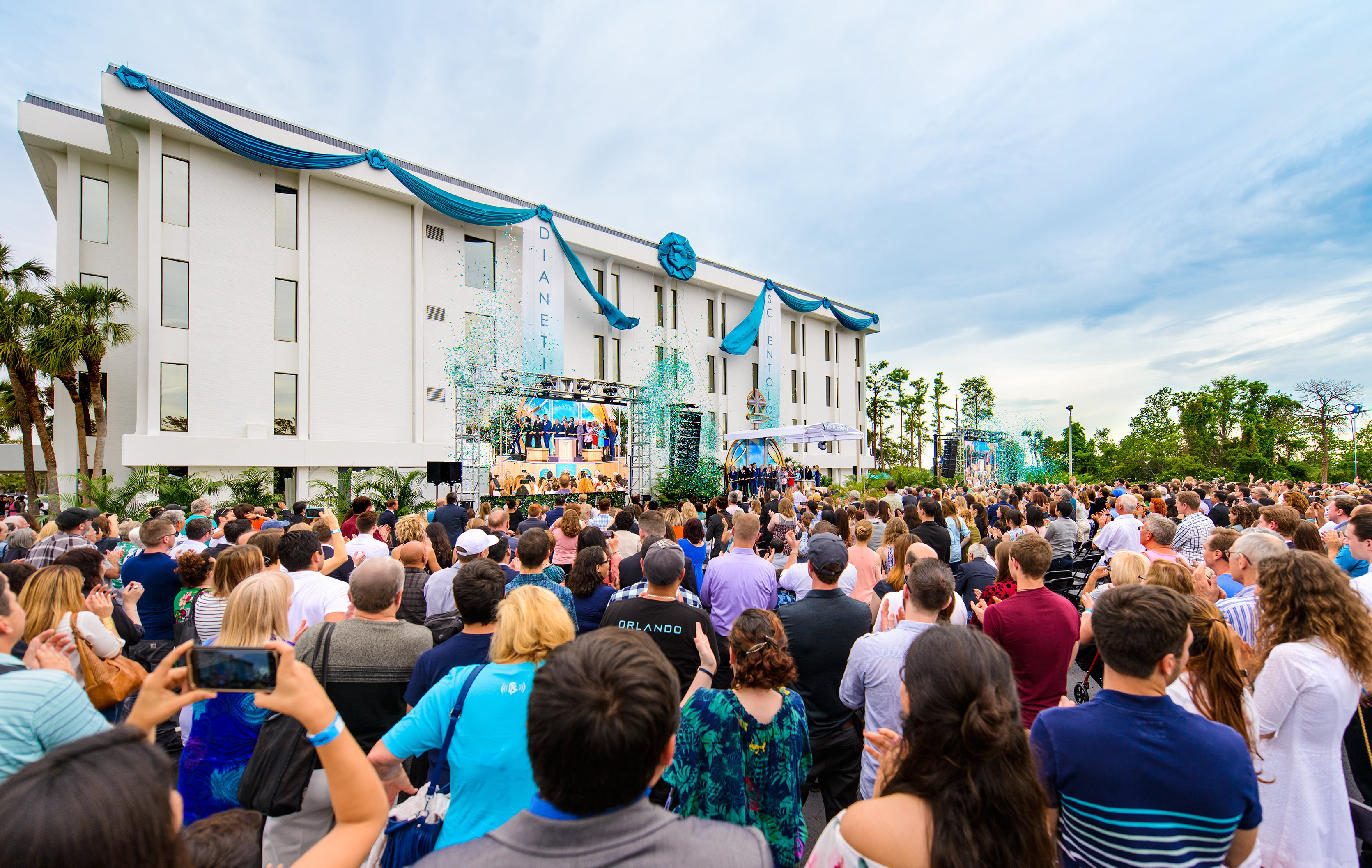 Plus de 10 000 Scientologistes envahissent l’avenue Fort Harrison pour l’inauguration du Flag Building à Clearwater, en Floride. Le nouveau siège spirituel de la Scientology, qui s’étend sur tout un pâté de maisons, dispense les plus hauts niveaux d’audition et de formation de Scientology à des milliers de personnes à la fois.