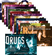 Cette série de quatorze livrets « La vérité sur la drogue », qui sont avant tout des livrets de prévention destinés aux jeunes, décrivent l’origine des drogues les plus consommées, leurs noms courants et leurs effets à court et à long terme : cannabis, ecstasy, cocaïne, antidouleurs, LSD, cristal meth, héroïne, etc. Un livret donne une vue d’ensemble des réalités de la toxicomanie et des raisons pour lesquelles les gens commencent à se droguer. Ce lot est envoyé gratuitement.
