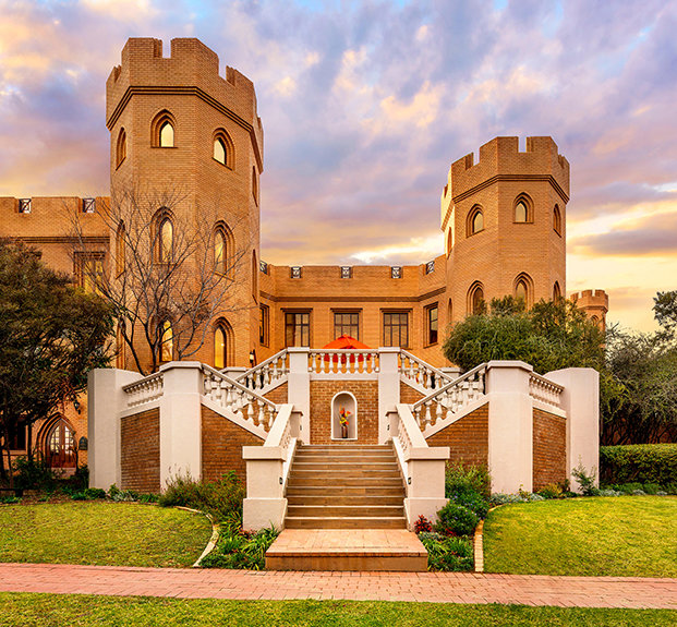 Au centre de cette colline paradisiaque, sur un terrain de 9 hectares, le château de Kyalami, d’une superficie de 8000 mètres carrés, témoigne de l’engagement de la religion à aider à créer une Afrique capable de réaliser son potentiel illimité. La présence du château reflète le côté magique du paysage sud-africain face aux jumelles géantes du Gauteng, Johannesbourg au sud et Pretoria au nord. Le paysage panoramique captive les visiteurs et les 12 tourelles crénelées ainsi que les murs de 20 centimètres d’épaisseur du château créent une ambiance unique. L’intérieur élégant, agrémenté de sols en marbre italien provenant des carrières mêmes que Michel-Ange avait utilisées, a conféré à cette inauguration spectaculaire une atmosphère particulière.