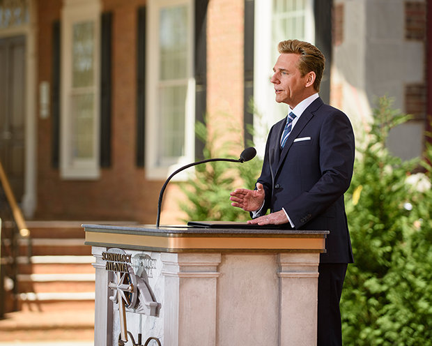 « Voici la Scientology pour tous les gens du sud de l’Amérique », a dit David Miscavige, chef ecclésiastique de la Scientology et Président du conseil d’administration du Religious Technology Center. « Donc, lorsque ce ruban sera tombé sur Atlanta et qu’en retour la ville s’élèvera, si quelqu’un demande vers quoi s’élève Atlanta, vous pourrez assurément répondre : elle s’élève vers l’éternité ! »