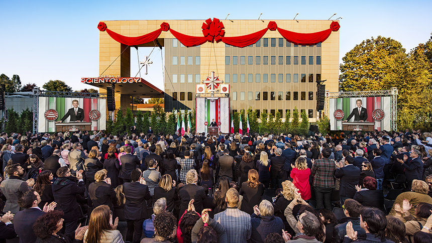 Des milliers de personnes se réunissent à Milan, centre italien de la culture et de la mode, pour inaugurer la plus grande Église idéale de Scientologie de la planète.