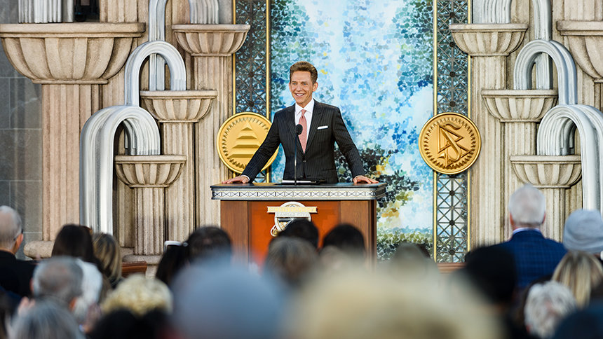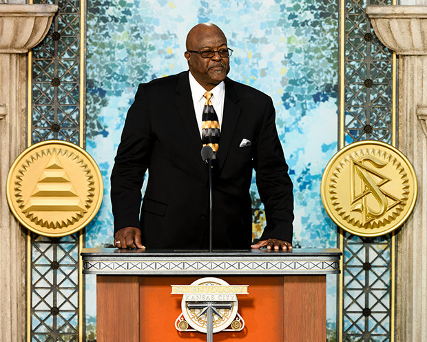 Jeff Owens, vice-président de ce quartier des arts, a applaudi le travail fait par l’Église pour restaurer son nouveau foyer dans ce quartier dynamique : « C’est vrai, votre foyer est situé en plein centre du quartier des arts. Mais vous ne vous êtes pas contentés de vous installer, vous vous êtes mis en action. Quand vous êtes arrivés et que vous avez restauré ce précieux bâtiment historique, vous avez dit : “L’art ne connaît pas de frontières. Nous allons créer un chef-d’œuvre ici même.” J’étais franchement surpris quand je suis entré dans votre hall magnifique et que j’ai vu ce que vous en aviez fait. C’est une merveilleuse préservation de la culture américaine de Kansas City. C’est-à-dire, votre foyer reflète la personnalité de notre foyer, en tant que collectivité. »