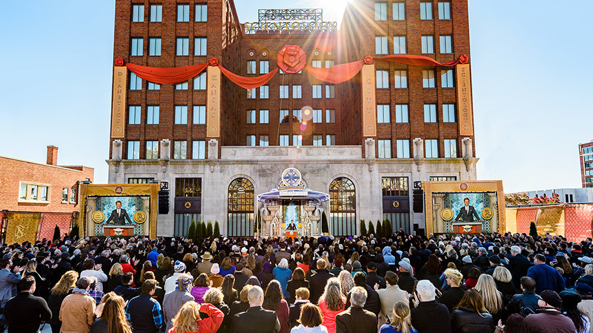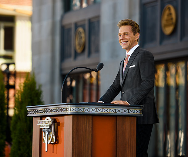 M. David Miscavige, chef ecclésiastique de la religion de Scientology, dirigeait la cérémonie d’inauguration. Dans son discours d’ouverture, M. Miscavige a souligné l’esprit jovial de la journée en l’honneur du nouveau foyer de l’Église dans le Midwest : « Kansas City, endroit où l’on parle l’“américain” le plus pur de tous les 50 États et où l’on ne peut trouver de meilleur barbecue dans toute la galaxie de la gastronomie. C’est aussi une ville où l’“éthique du travail” est toujours ce qu’elle était avant que le mot “éthique” ne perde son sens. Donc oui, Kansas City, nous voilà ! »