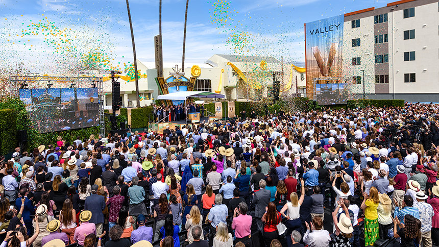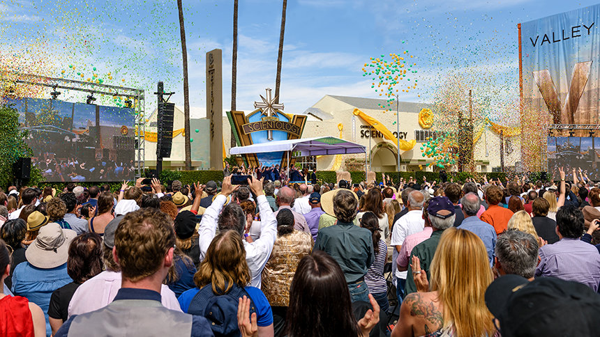C’était donc, le dimanche 19 mars à 13h00 que 5 000 scientologues se sont réunis pour assister à l’ouverture de la plus grande Église de Scientology idéale en Amérique du Nord. C’était une cérémonie digne de la taille, la portée et l’importance du nouveau foyer de Valley, avec plusieurs musiques de films évoquant l’âge d’or du cinéma et un « V pour Valley » qui fut l’hymne spécialement écrit pour l’occasion. Des milliers de personnes dans l’assemblée se sont levées lors de cette célébration joyeuse et applaudirent chaque dignitaire passionné qui a remercié le grand impact social de l’Église.