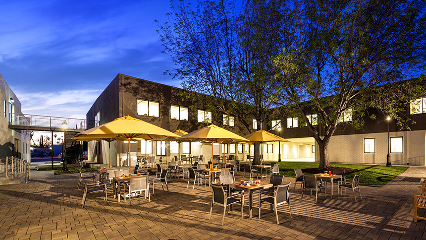 La nouvelle Église est adjacente au carrefour animé du nord d’Hollywood où le boulevard de Burbank et Lankershim rencontre Tujunga et quelque 60 000 automobilistes passent chaque jour. Le bâtiment s’étend sur 8 800 mètres carrés sur un terrain de 2 hectares, à quelques pâtés de maisons du quartier des arts très populaire de NoHo et est engagé à une participation communautaire pour créer un changement dans toute la région.