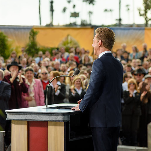 Lors de cette inauguration, une sensation de joyeux accomplissement règne dans l’air marin du Pacifique. Présidant la célébration, le chef ecclésiastique de la religion de Scientology, M. David Miscavige, a dit à l’assemblée que la vague qu’elle attendait était sur le point de se briser : « Une vague parfaite. Une vague sans fin. Une vague que n’importe qui peut prendre vers des sphères d’aptitudes spirituelles et d’immortalité. Mais, bien sûr, tout le monde ne sait pas où le littoral se termine et où l’aventure d’une vie commence, ce qui est l’endroit où vous arrivez avec une invitation à la liberté et une leçon sur la façon d’attraper cette vague et de ne jamais plus être le même. »