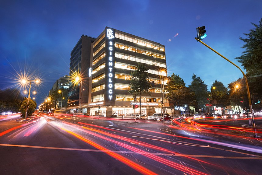 Nichée sur les hauts plateaux prolongeant la cordillère des Andes à plus de 2600 mètres au dessus du niveau de la mer, Bogotá est une métropole florissante de près de 8 millions d'habitants. Avec ses 8 étages, sa nouvelle Église de Scientology idéale se dresse bien en vue sur la « calle 100 » de la ville dans le quartier nord d'Usaquen. La structure ultramoderne de 4 450 mètres carrés se trouve au centre du quartier animé des commerces et divertissements de la ville.