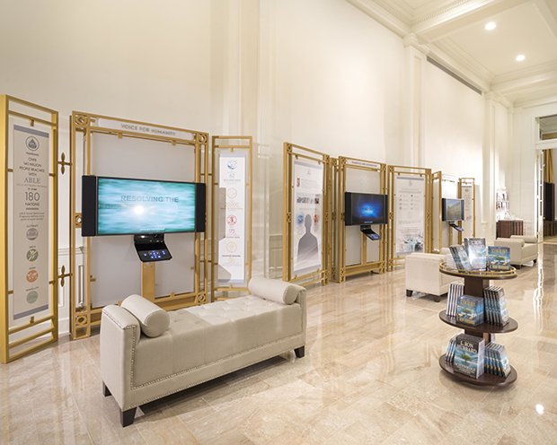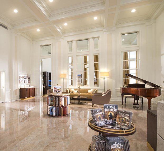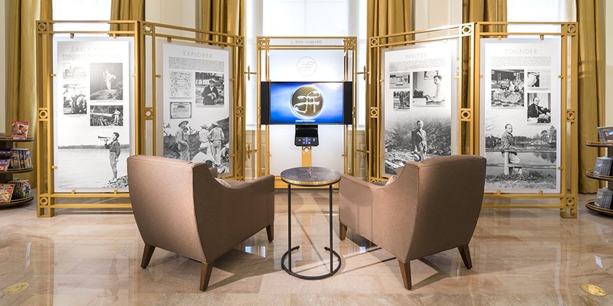 Conçu comme un lieu informatif de réunion aux portes ouvertes, le centre d’information montre des présentoirs biographiques complets donnant un éclairage sur la vie extraordinaire et l’héritage du fondateur de la Scientology, Ron Hubbard, depuis son enfance jusqu’à sa carrière d’auteur avant l’avènement de la Dianetics et de la Scientology, puis aussi du corpus révolutionnaire de ses travaux pour établir et définir la religion elle-même.