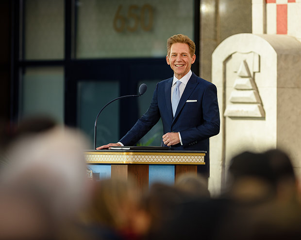 Le Président du conseil d’administration du Religious Technology Center, M. David Miscavige, a accueilli la foule enthousiaste avant de couper le ruban. « Aujourd’hui, cette ville de Chicago est incomparable, » a déclaré M. Miscavige. « Et avant que le ruban de la ville venteuse ne soit coupé, c’est aussi le moment de reconnaître ce que vous savez déjà : tout comme Chicago est autrefois renée, aujourd’hui elle va prendre un nouveau départ. Et donc, elle va redonner aux gens l’aptitude à vivre une vie meilleure, que ce soit selon leur propre estimation ou avec leurs semblables, pour jouer à un jeu plus intéressant. »