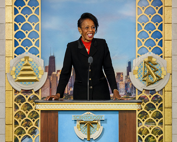 La Dr Gwen Appleberry, conseillère aux citoyens du département de la police de Chicago et du conseil d’éducation, a parlé de la sagesse du Fondateur de la religion : « J’en sais un peu sur le potentiel qui se trouve derrière ces portes. Vous voyez, il y a 47 ans, j’ai découvert La Dianetics, » le livre prodigieux du Fondateur de la Scientology, L. Ron Hubbard.