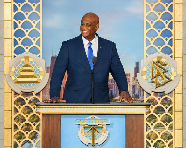 « Avec cette nouvelle Église et les programmes transformateurs que vous allez diffuser dans notre ville, nous avons un plan pour construire, un pâté de maison après l’autre, une ville dont nous sommes fiers. Et elle va maintenant se tenir sur les fondations inébranlables de nos habitants, de nos organisations et de nos centres de changements, comme cette nouvelle Église de Scientology ! »