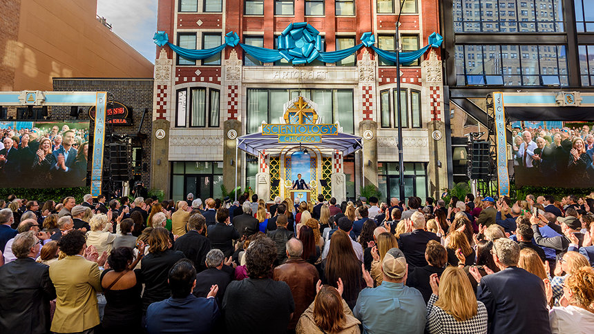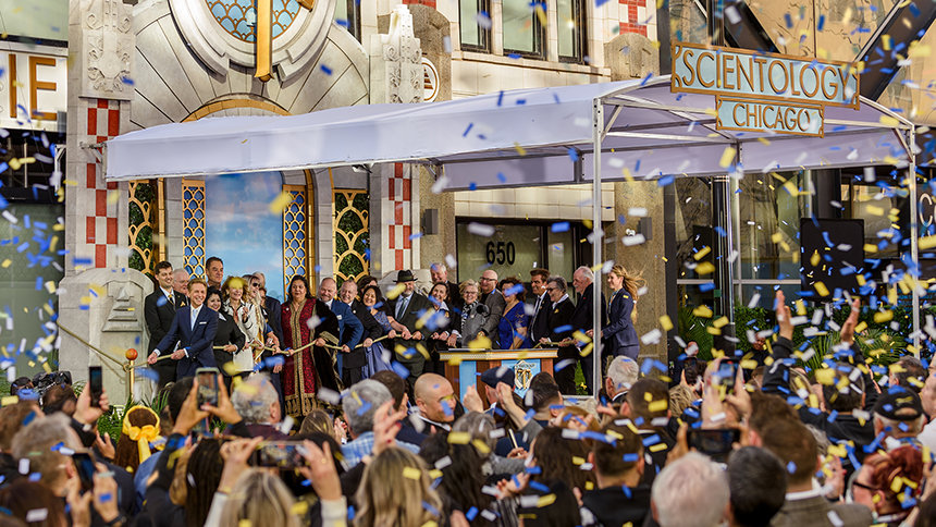 Lors d’une journée de mars exceptionnellement douce pour Chicago, à quelques pâtés de maisons du lac Michigan et à quatre pâtés de maisons du centre-ville, une foule de milliers de personnes, y compris des dignitaires locaux, ont chaleureusement accueilli le nouveau joyau dans le fameux quartier des imprimeurs de Chicago ; un bâtiment de sept étages merveilleusement restauré qui est à présent la nouvelle Église idéale de Scientology de Chicago.