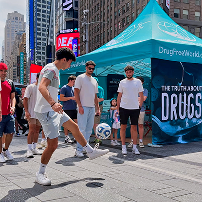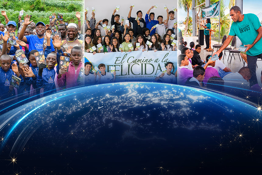 • Un Monde Sans Drogue, formant un front international contre l’abus de drogues, a distribué des millions d’exemplaires de La vérité sur la drogue. Les livrets ont été remis de main en main dans des carrefours mondiaux et lors de très grands événements sportifs comme la Coupe du Monde des Clubs de la FIFA et le Super Bowl. Au total, la Fondation a fait connaître La vérité sur la drogue lors de 2 700 événements dans 150 pays.