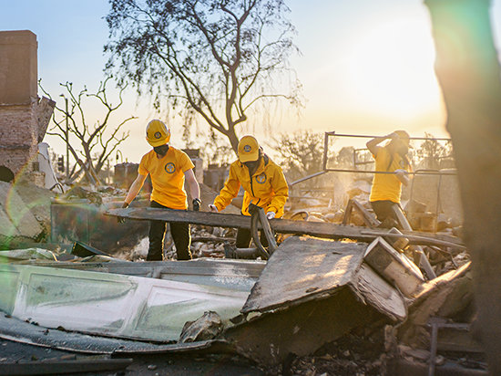 • La plus grande force de VM jamais déployée sur le sol américain, pas moins de 2 500 Ministres Volontaires répondant aux incendies historiques de Los Angeles. Les flammes ont fait rage pendant des jours, de la côte pacifique jusqu’aux montagnes, brûlant une zone deux fois plus grande que Paris et provoquant des évacuations massives. Les VM ont aidé près de 10 000 habitants de Los Angeles en une seule journée — plus de 100 000 au total — en fournissant logistique, nourriture et aide spirituelle aux premiers intervenants et en répondant à l’appel de plus de 70 agences d’intervention d’urgence.