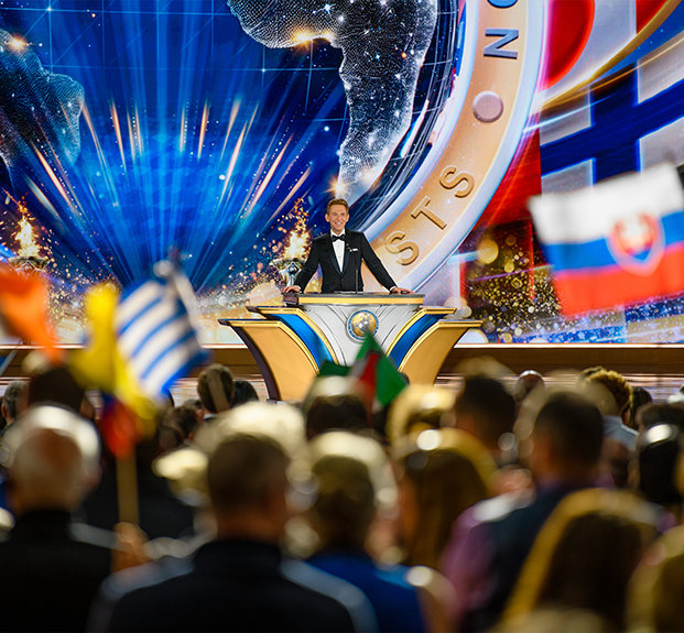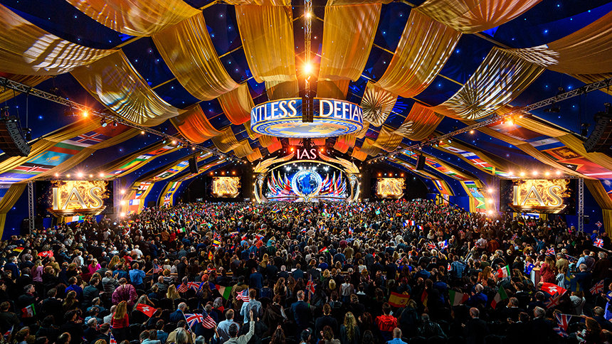 L’élégance et la splendeur encadrent la célébration alors que les membres de l’IAS convergent des six continents vers Saint Hill, la résidence historique du Fondateur de la Scientology L. Ron Hubbard dans le West Sussex. S’avançant avec grâce sur le tapis rouge, la foule entre dans la Grande Tente avec une anticipation joyeuse, les drapeaux du monde entier flottant haut, les cœurs en fête alors que tous les regards se tournent vers la scène.