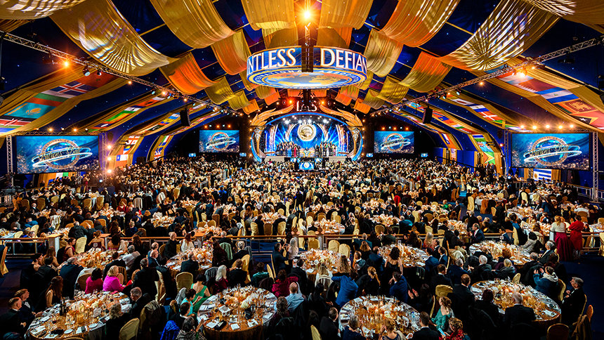 Le samedi soir, la grande tente s’était magnifiquement métamorphosée en une salle de bal élégante pour le Bal annuel des Patrons de l’IAS. Lors du majestueux dîner en tenue de soirée, M. Miscavige a honoré les membres qui ont accru leur soutien, faisant progresser les initiatives mondiales sur six continents. Pour égayer la soirée en musique, le lauréat d’un Grammy Award, Mark Isham, et un ensemble de musiciens ont donné un concert.