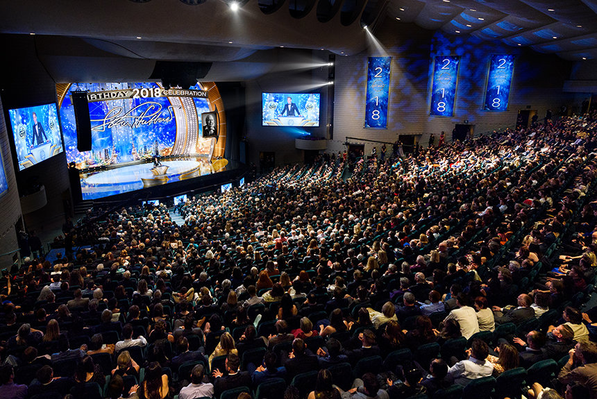 Et donc, la soirée commença avec une anticipation électrique et une acclamation retentissante pour le leader ecclésiastique, M. David Miscavige : « Oui, en effet, cette célébration d’anniversaire ne se compare en rien à ce que nous avons vu jusqu’à présent... Ce grand moment de notre histoire, ce soir, cette heure à cet instant quand je dis : Voici la Scientology aujourd’hui. Et en supposant que vous comprenez ce que nous possédons maintenant en matière d’excellence technique et de ses ressources, eh bien, vous ne pouvez pas dénier que ces temps sont légendaires. Par conséquent, il est normal que nous revenions maintenant à l’endroit où cette légende a commencé. »