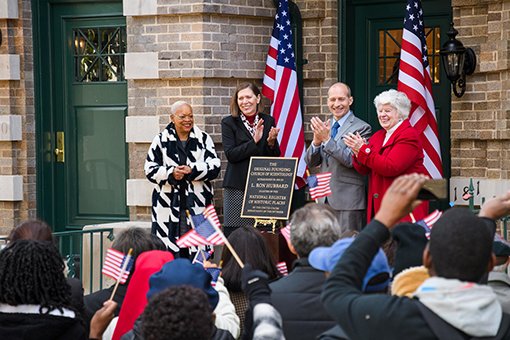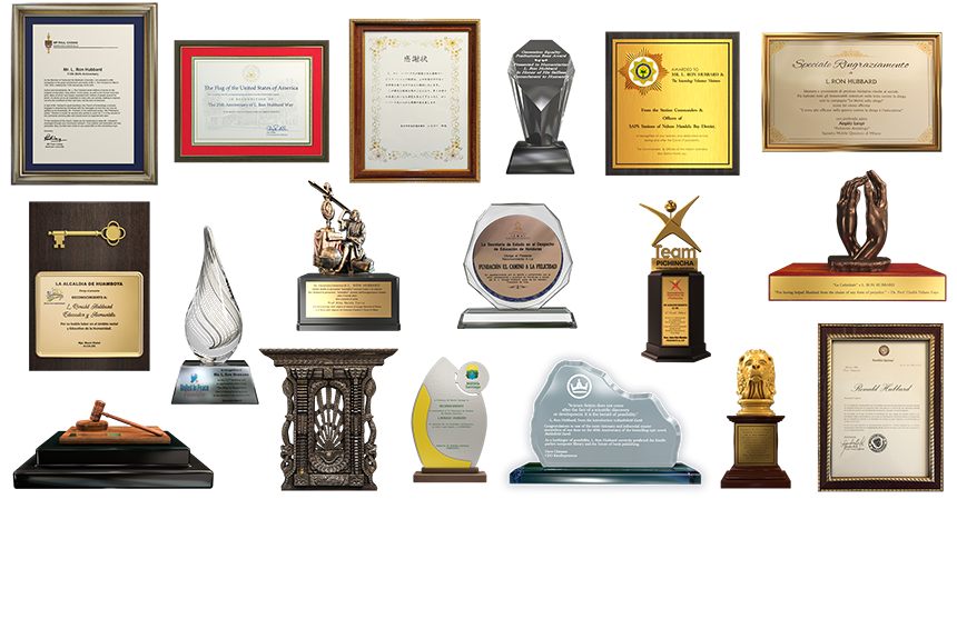 M. Miscavige a ensuite présenté une cascade de distinctions honorifiques décernées à L. Ron Hubbard en reconnaissance de son anniversaire :