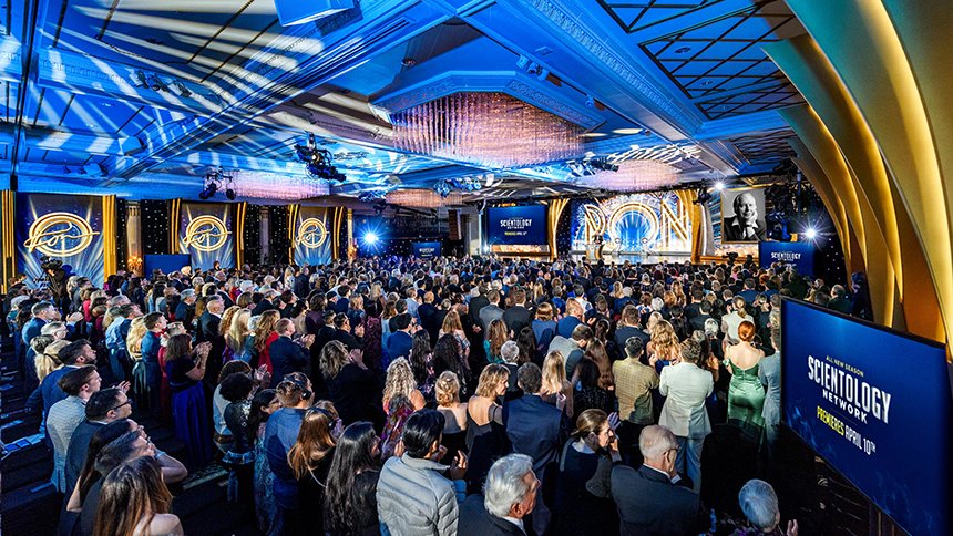 Une soirée où les Scientologistes venaient d’Europe, du Royaume-Uni, de toute l’Asie, d’Australie, de Nouvelle-Zélande, d’Amérique latine et de tous les États-Unis pour une célébration en l’honneur de l’homme qui apporte espoir, aide et des aptitudes accrues à des millions de personnes : L. Ron Hubbard.