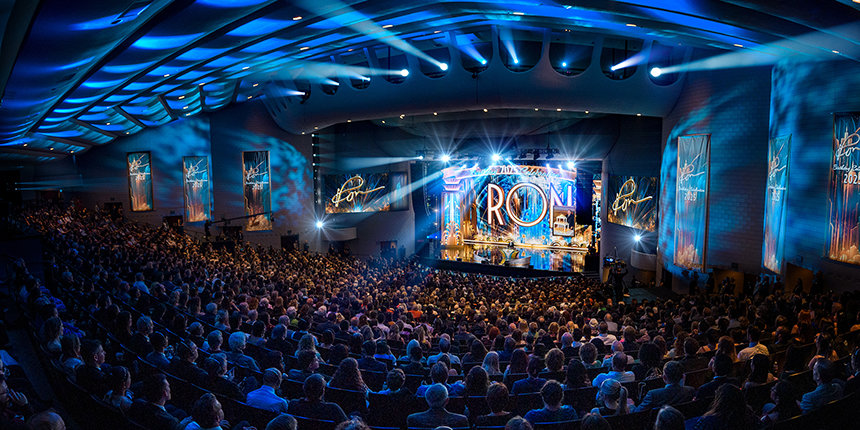« Il reste encore à aborder un sujet sur le programme de ce soir. C’est l’heure de passer de “l’autre côté du miroir” et de voir ce que l’avenir nous réserve, » a-t-il déclaré. Et pour les milliers de participants, ce qui a suivi était une révélation inattendue, inoubliable et indéniable : un aperçu époustouflant du futur L. Ron Hubbard Hall — un chef-d’œuvre destiné à couronner le complexe de Flag.