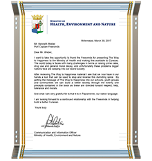L’interaction du Freewinds et de son équipage avec la société montre : « Qu’ils ne tendent pas simplement une main ou font une faveur, mais assument une responsabilité sociale », a dit le Ministre de l’infrastructure et des ports lors d’une une vidéo en l’hommage du Freewinds. « Cette passion est faite d’amour, de sincérité, d’amitié et de bonheur véritables. »