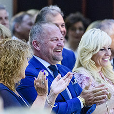 La nuit suivante, les invités ont eu droit à une présentation biographique en l’honneur de L. Ron Hubbard (LRH). C’est une soirée qui a informé et impressionné ceux qui étaient présents avec de nombreuses histoires inédites sur le legs de M. Hubbard. Des histoires présentées par le biographe de LRH, Dan Sherman, qui parlait de la bonté et de la vision de M. Hubbard.