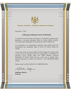 - Tous unis pour les droits de l’Homme et Des jeunes pour les droits de l’Homme, qui ont déclenché un mouvement pour les droits de l’Homme à Toronto, la ville la plus cosmopolite sur Terre, en Afrique dans le pays le plus peuplé du Nigeria et au Sri Lanka, où les hindous, bouddhistes, chrétiens et musulmans ont travaillé ensemble pour faire connaître la Déclaration universelle des droits de l’Homme.
