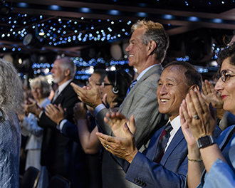 « Depuis la dernière fois que nous nous sommes rencontrés, notre système solaire des Églises inclut maintenant : Budapest en Hongrie, Harlem à New York, San Diego en Californie, et la frontière de notre monde terrestre à Auckland en Nouvelle-Zélande, » a-t-il annoncé avant de décrire les inaugurations des plus récentes Église San Fernando Valley en Californie, Miami en Floride, Copenhague au Danemark.