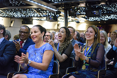 Quand M. Miscavige a salué l’auditoire lors de la première soirée, il a aussi rendu hommage au Freewinds, dont l’équipage—y compris les cinq capitaines au long cours et les 133 marins certifiés—représente un nombre impressionnant de 5 000 années d’expérience en mer. Le bateau, a-t-il déclaré, a été pratiquement reconstruit depuis son voyage inaugural, devenant ainsi « le navire le plus sûr sur les sept mers. »