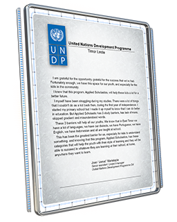 - Et finalement, les programmes soutenus par l’IAS visent à soutenir la société à grande échelle avec Le chemin du bonheur qui restaure un esprit de fraternité partout dans la capitale de l’Europe, Bruxelles ; Applied Scholastics a appliqué ses programmes d’alphabétisation dans les villages du Timor oriental, dans le Pacifique Sud ; et le centre Narconon de réhabilitation des toxicomanes permet aux drogués de s’en sortir dans l’État de Floride.